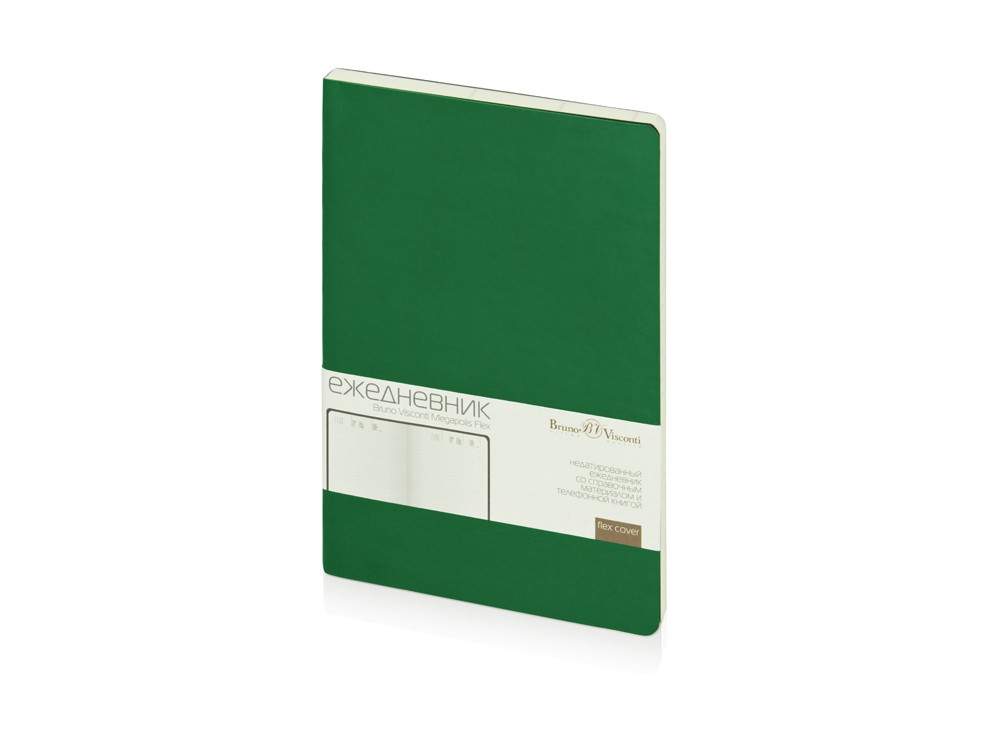 Недатированный ежедневник «Megapolis Flex» от бренда Bruno Visconti - это качественный корпоративный подарок по выгодной цене, произведенный специально под персонализацию. Представлен в универсальном формате А5 и состоит из 272 страниц. Элегантная закругленная flex обложка из гладкого кожзама имеет гибкую конструкцию и приятна на ощупь. А интегральный переплет позволяет сэкономить место в деловой сумке или портфеле – ежедневник можно просто свернуть в трубку или согнуть пополам.